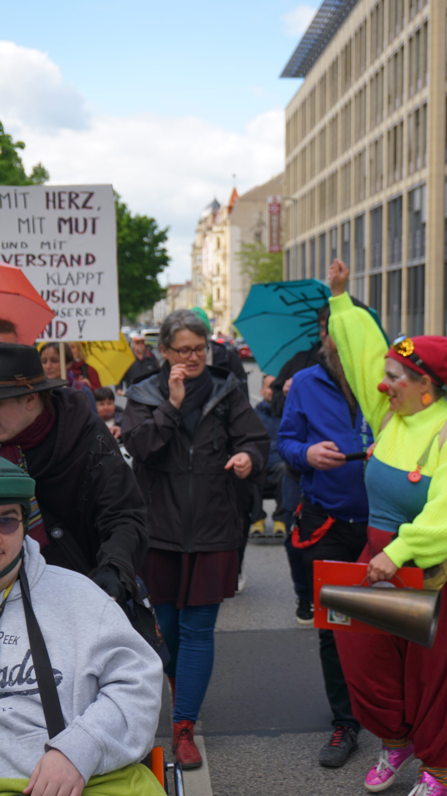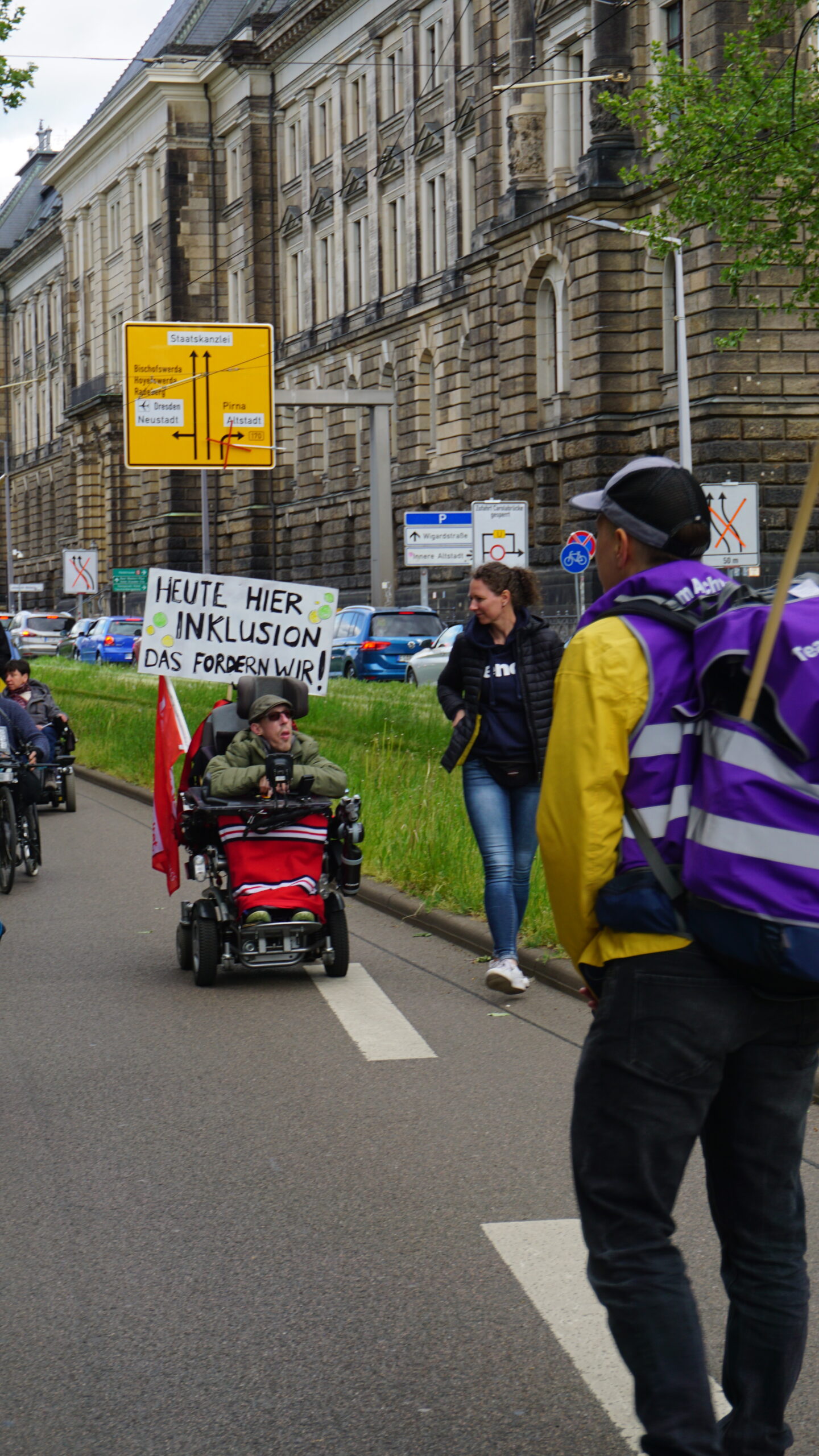 So gut, dass ihr euch mit verschiedenen Organisationen und Vereinen zusammentut. Die lag-selbsthilfe-sachsen hat einen großen Bericht (https://lag-selbsthilfe-sachsen.de/lieber-gleichberechtigt-als-spaeter-rueckblick-auf-den-protesttag-am-5-mai-2025/) über den Protestmarsch geschrieben.