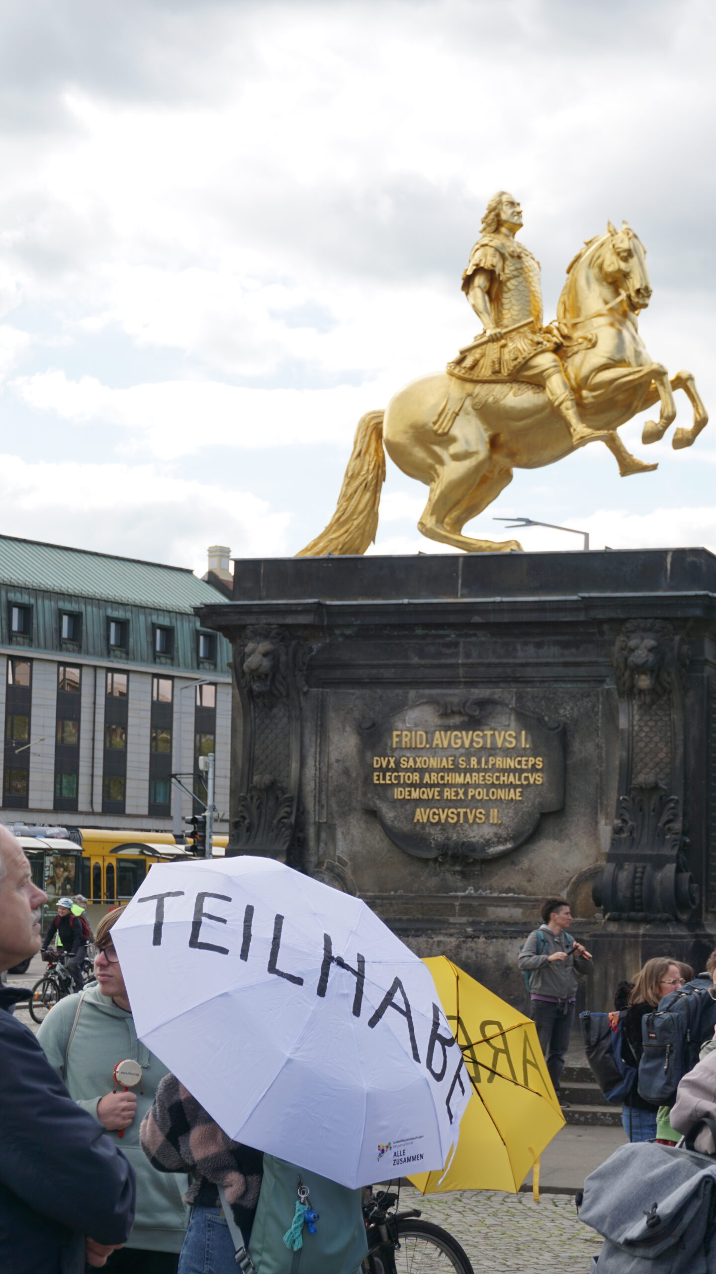 Nach einem kurzen Stopp am Goldenen Reiter ging es über die Hauptstraße bis kurz vor den Albertplatz an unsere Bühne.