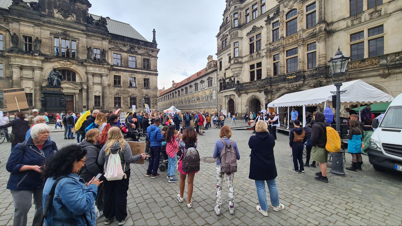 Auf dem Schlossplatz gab es ein Soli-Konzert. Die Band des farbwerk e.V. spielte zuerst. Mit tollen Liedern und Texten begeisterten die Künstler:innen das Publikum. Nach einer Rede einer Studentin mit Behinderung spielte die Band Verkannt und den wunderbaren Abschluss machte Banda Comunale. Alle sind sich einig, dass dieser Tag absolut gelungen war. Danke an die Organisator:innen LAG SH, Stadt AG Dresden und Stadt Dresden.