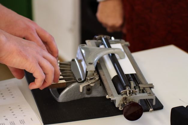 Jede:r ist eingeladen, den eigenen Namen in Brailleschrift zu drucken.