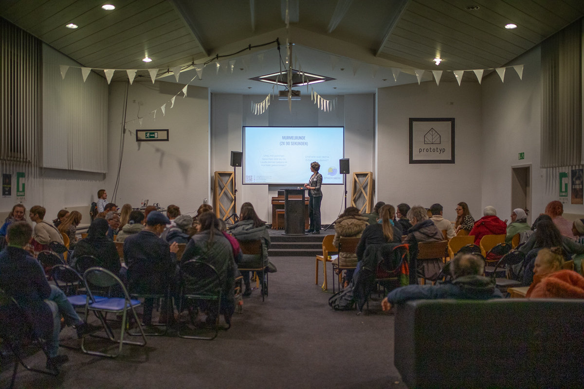 Die Gründer:innen des Vereins erzählten, wie Sprachenmehr entstanden ist. Dabei teilten sie auch ihre Erfahrungen mit dem Thema Mehrsprachigkeit. Auch Gäste konnten ihre persönlichen Geschichten und Meinungen teilen. Sie beantworteten zwei wichtige Fragen: